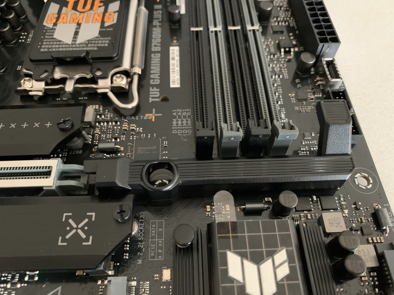 작년 2023년 4월에 출시한 ASUS TUF Gaming B760M-PLUS과 달리, 그래픽 카드 분리방식이 달라졌고, M.2 슬롯이 한개 더 추가되었습니다. 다나와 최저가 기준 5천원 차이인데, 조립을 자주하거나 저장 장치가 많이 더 많이 필요하신 분에게는 더 좋은 선택지가 되겠습니다.