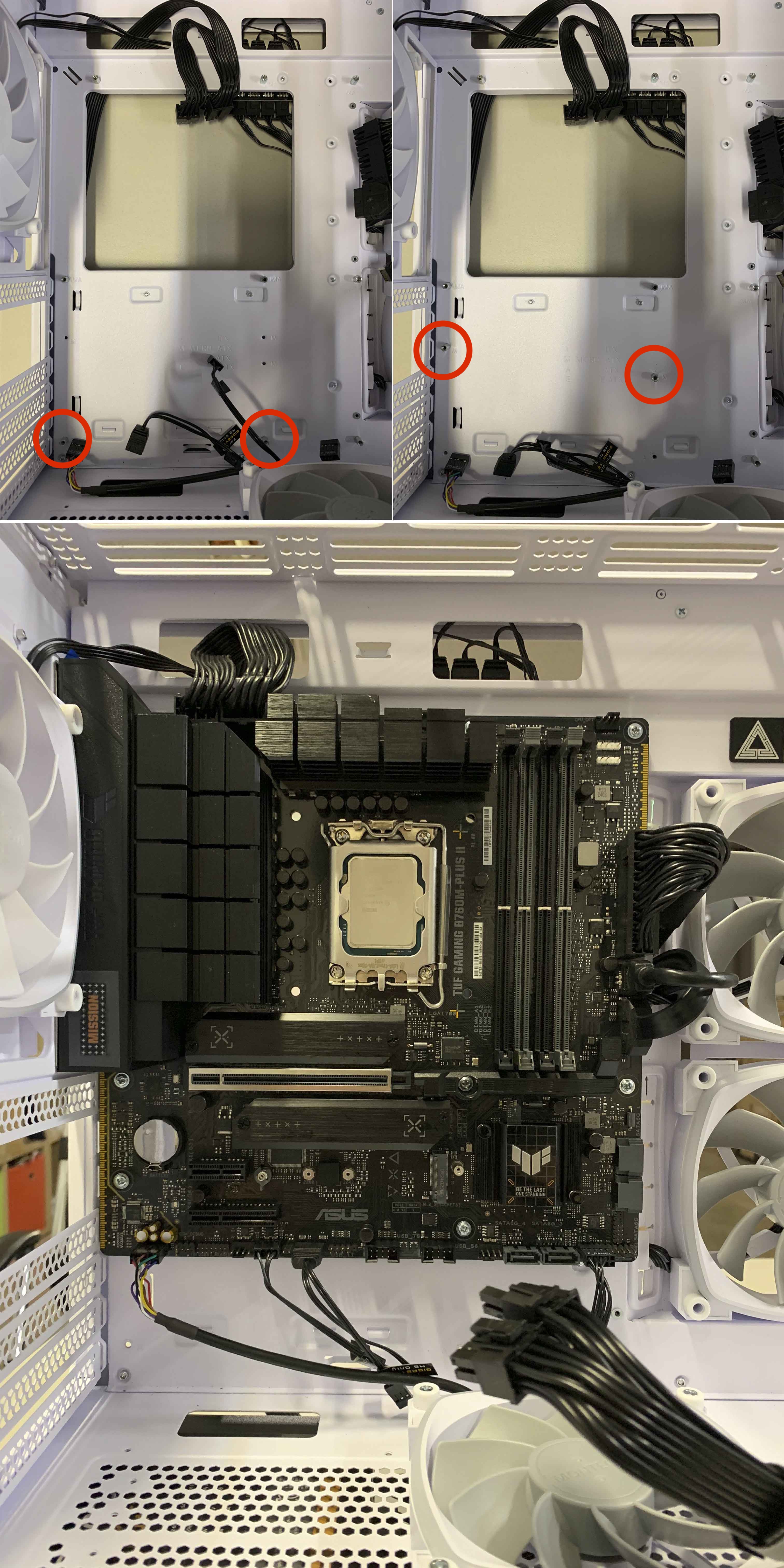 원래 사용해오던 메인보드가 ATX폼팩터라 ASUS TUF Gaming B760M Plus II에 맞게 스탠드오프(고정기둥)을 옮기고, 메인보드를 고정하여 설치했습니다.