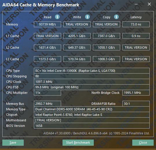 AIDA64 실행한 결과 레이턴시는 73.0ns로 측정되었습니다.