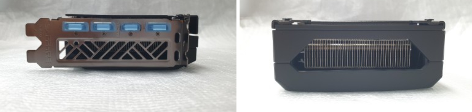 ▲방열판과 히트파이프가 적절히 사용되었고 금속재질의 백 플레이트에는 통풍구가 있어 방열에 좀 더 힘을 쓴 디자인입니다.