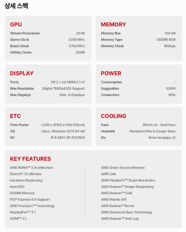 이번에 사용해본 제품은 가성비 그래픽카드로 이름이 나있는 #라데온7600 그래픽카드 입니다.