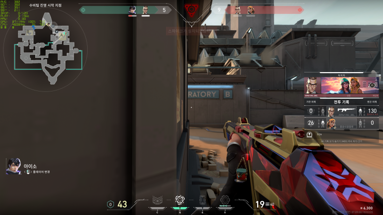 ▲발로란트는 평균 380 프레임 이상 측정이 되었고 끊김이나 프레임드랍 같은 느낌은 1도 없이 부드러운 게임 플레이가 가능했습니다.