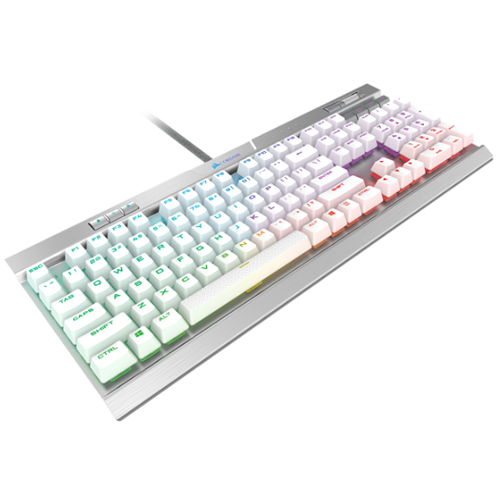 제조사 : CORSAIR 등록일 : 2018.06 제품 분류 : 키보드사이즈 : 풀배열연결방식 : 유선인터페이스 : USB접점 방식 : 기계식스위치 : 체리스피드키종류 : 멀티미디어키기계식 스위치 : 은축키캡 : 이중사출,PBT매크로 : 매크로응답속도 : 1ms키보드 구조 : 스텝스컬쳐2부가기능 : 백라이트,알루미늄프레임무게 : 1,250g색상 : 화이트