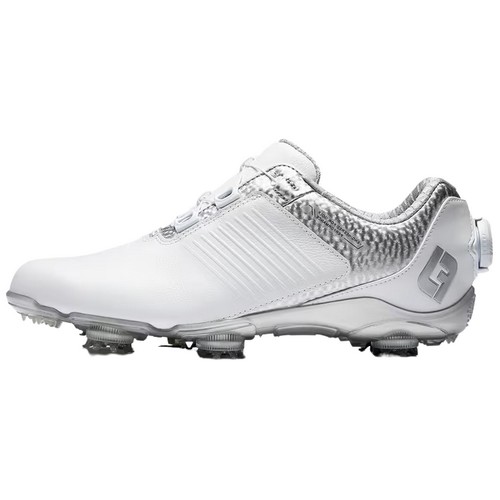 브랜드 : 풋조이 등록일 : 2023.02 품목 : 골프화형태 : 스파이크스파이크개수 : 6개사용대상 : 여성용외피 : 천연가죽밑창 : 합성고무특징 : 방수,보아시스템색상 : 실버,화이트출시년도 : 2023년형