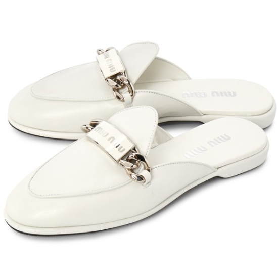 제조사 : 미우미우 브랜드 : 미우미우 등록일 : 2023.05 품목 : 슬리퍼성별 : 여성용소재 : 가죽색상 : 화이트