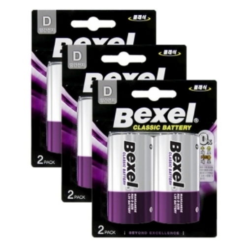 벡셀 망간 건전지 D형 카드형 2입X3개 6알 R20