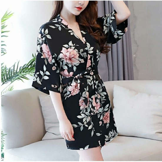 플라워 기모노 실크 골프가운