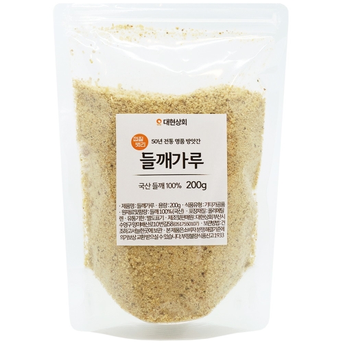 제조사 : 대현상회 브랜드 : 대현상회 등록일 : 2022.10 품목 : 들깨가루용량 : 200g포장형태 : 지퍼백