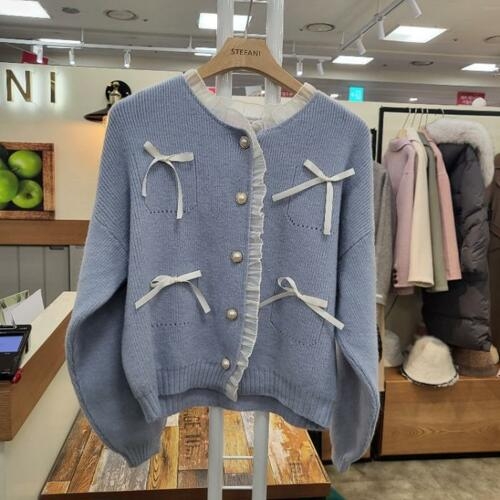 스테파니 HC03 쉬폰 배색 니트 리본가디건 A24 SW4102 - 에누리 가격비교
