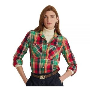 로렌 Ralph 여성용 격자무늬 릴렉스 핏 셔츠 S, 레드 멀티 , 멀티. 176025