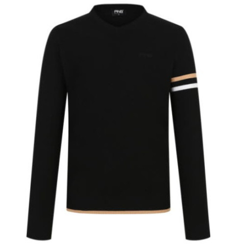 핑 라인 배색 브이넥 긴팔 니트 111D1SR182 [BK, 블랙]