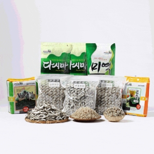 브랜드 : 거상물산 등록일 : 2015.02 세트유형 : 건어물세트원산지 : 국내산종류 : 젓갈,기타구성 : 중멸 500g,소멸 500g,자멸 500g,돌김 100장,파래김 100장,건미역 100g,다시마 200g