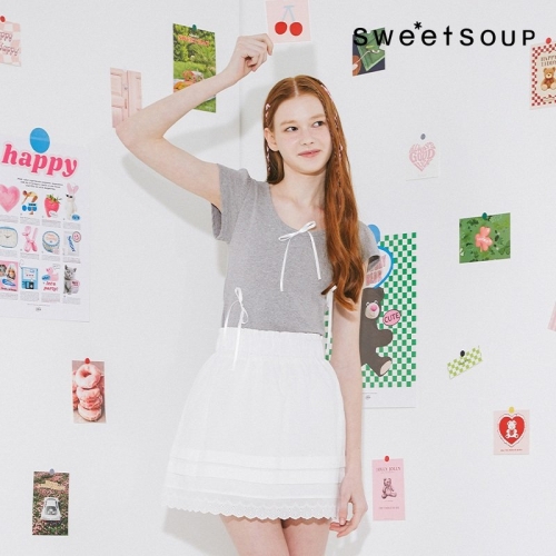 스위트숲 SWEET 리본 포인트 반팔 티셔츠 WA3STJ1