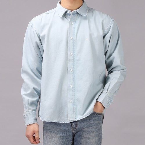 후앙스 오버핏 베이직 자수 긴팔 데님 셔츠 SPST-5167