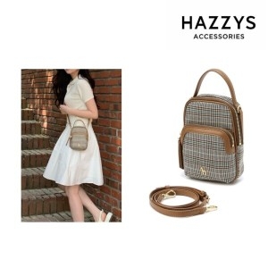 헤지스 ACC 가방 브라운 체크 나일론 더블지퍼 크로스 미니백 HIWA4F431W