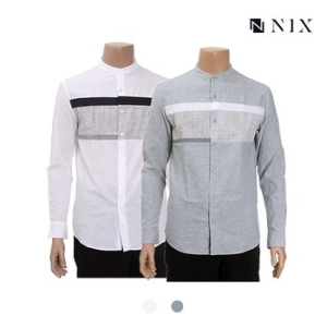 닉스 남성 코튼린넨 3도 블록 헨리넥카라 셔츠_FNNECSL112P