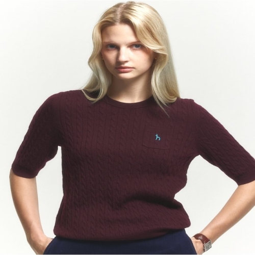 헤지스레이디스 여성 베이비케이블 반팔 스웨터_HSSW4CC73 [D2, 버건디]
