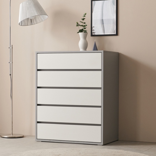 제조사 : 로쏘 등록일 : 2024.08 분류 : 일반서랍장단수 : 5단서랍개수 : 5개프레임 : 목재(MDF 외)크기(가로x세로x높이) : 80x50x99.6cm가로 : 80cm높이 : 99.6cm색상 : 크림화이트, 화이트그레이