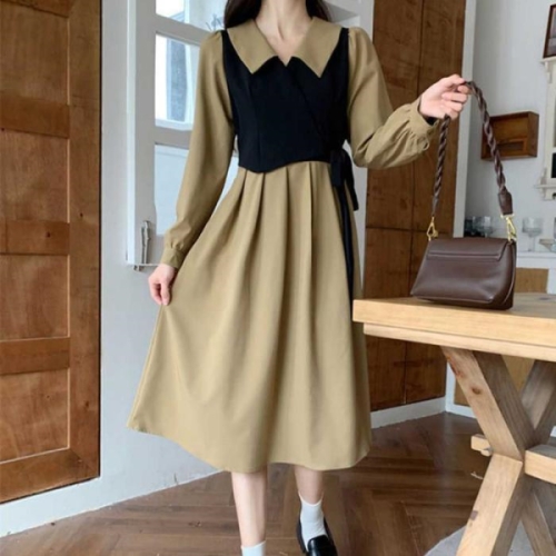 오노마 ONM 핀턱 A라인 롱원피스 빅카라 레이어드st 가을 여친룩 20267231