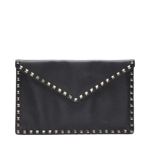 발렌티노 빈티지 블랙 카프스킨 엔벨로프 락스터드 스탐파 알체 여성 클러치 TW2P0P56VSH 0N