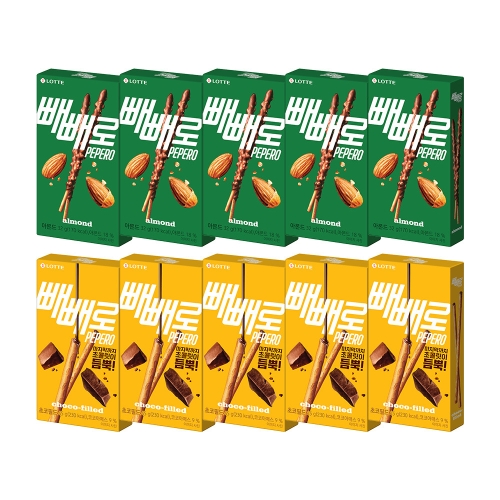 롯데제과 아몬드 빼빼로 32gX5개+초코필드 빼빼로 45gX5개