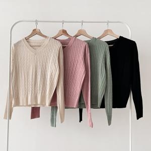 바비 국산 여성 꽈배기 V넥 데일리 긴팔 니트 티셔츠 21DS-WKN-2565 - 에누리 가격비교