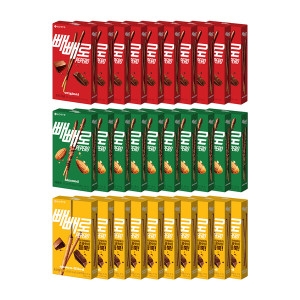 브랜드 : 롯데제과 등록일 : 2024.11 품목 : 빼빼로세트낱개구성 : 총30개구성 : 빼빼로 초코 46gx10개,아몬드 32gx10개,초코필드 45gx10개