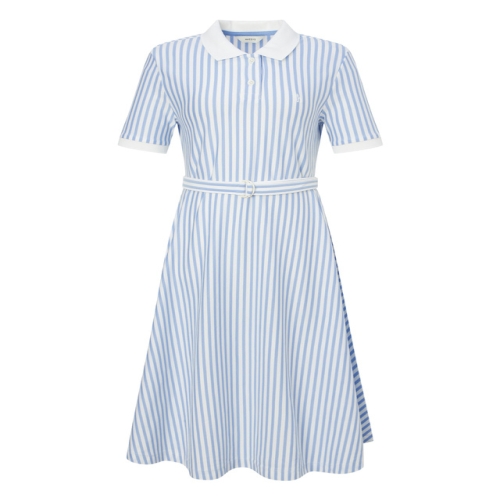 헤지스레이디스 여성 아이코닉 A라인 스트라이프 반팔 피케 원피스 블루_HSDR5BC32B2