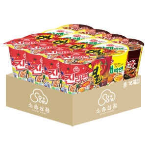 오뚜기 컵라면 소컵 16입 진라면+열라면+참깨라면+진짬뽕