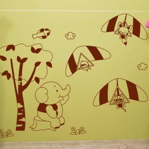 아리 꾸밈 ij064-하늘을 나는 동물친구들/그래픽스티커/일러스트/동물/하늘/나무/코끼리/고양이/여우/병/구름/새/ - 에누리 가격비교