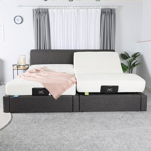 제조사 : 모베 브랜드 : 모베 등록일 : 2025.08 분류 : 모션베드구성 : 프레임+매트리스사이즈 : SS+SS매트타입 : 메모리폼매트기능 : 무중력자세(Zero-G),플랫모드(Flat),상체올림,하체올림,트윈베드시스템,독일오킨모터사용작동방식 : 무선리모컨,스마트폰제어주요재질 : 원목커버재질 : 기능성패브릭자재등급 : E1등급침대크기(가로x세로x높이) : 230x220x107cm, 매트크기: 110x200x20cm색상 : 아이보리, 베이지, 라이트그레이, 그레이, 블루