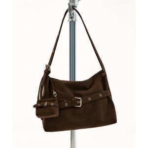 VVV SET 미디움 스웨이드 버클 호보 숄더 크로스백 _ 다크 브라운 349356Moony