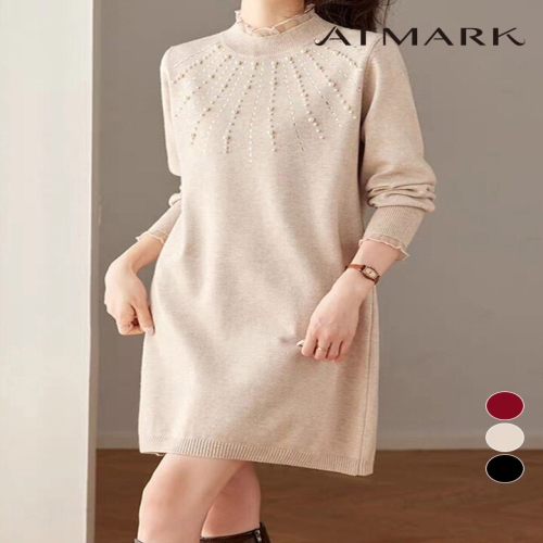 앳마크 프릴넥진주미니니트원피스_AA59OP009G