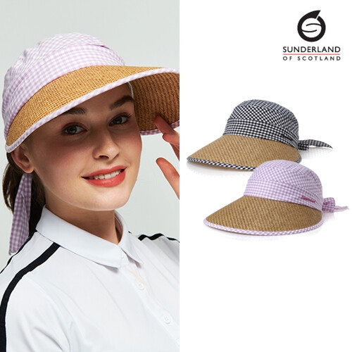 썬더랜드 여성 지퍼탈부착 펄프우드창 깅엄체크 리본 썬캡 (16612CP21)
