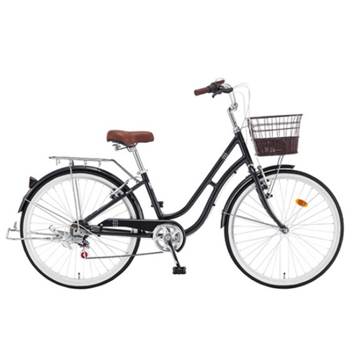 제조사 : 삼천리자전거 브랜드 : 레스포 등록일 : 2026.01 형태 : 여성용자전거프레임 : 알루미늄무게 : 16.7kg바퀴 : 66cm(26인치)출시년도 : 2026년형기어 : 7단핸들타입 : 시티형제동방식 : V형브레이크변속방식 : 그립시프터부가기능 : 바구니,짐받이,흙받이색상 : 펄 블랙, 다크 레드(무광), 베이지
