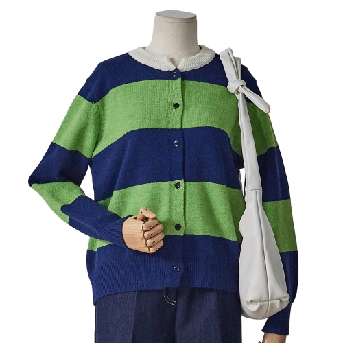 포커스 스트라이프 배색 니트 가디건 FS6A3KC3000