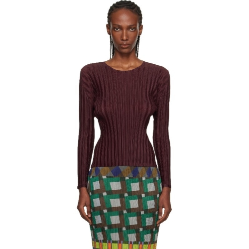 이세이미야케 버건디 골지 플리츠 재뉴어리 티셔츠 261941F110024