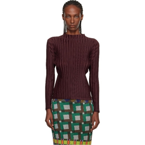 이세이미야케 터틀넥 버건디 골지 플리츠 재뉴어리 탑 261941F110023