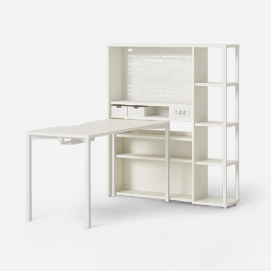 제조사 : 한샘 브랜드 : 한샘 등록일 : 2026.01 책상분류 : 책상분류 : 세트용도 : 서재, 학생방용형태 : h형착석형태 : 입식추가구성 : 책장가로 : 140cm상판깊이 : 80cm상판 : 목재(MDF)상판두께 : 23mm프레임 : 철제자재등급 : E0등급특징 : 철제다리기본포함 : 타공판,상단선반,전선홀,배선선반,콘센트,USB포트,LED조명,모니터암장착홈크기(가로x세로x높이) : 1400x800x720mm, 책장크기: 1195x261x1409mm색상 : 화이트