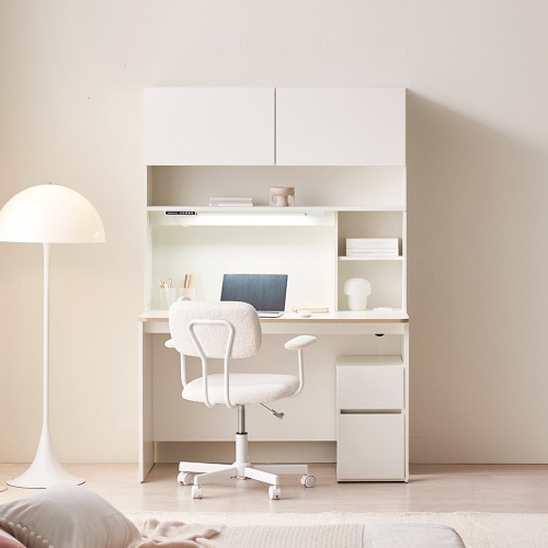 제조사 : 모던하우스 브랜드 : 모던하우스 등록일 : 2025.01 책상분류 : 책상분류 : 세트용도 : 서재, 학생방용형태 : 전면책장형착석형태 : 입식추가구성 : 책장가로 : 120cm상판깊이 : 60cm상판 : 목재(MDF)상판두께 : 18mm프레임 : 목재특징 : 모서리라운드처리기본포함 : 전선홀,콘센트,USB포트크기(가로x세로x높이) : 1200x600x1760mm색상 : 화이트