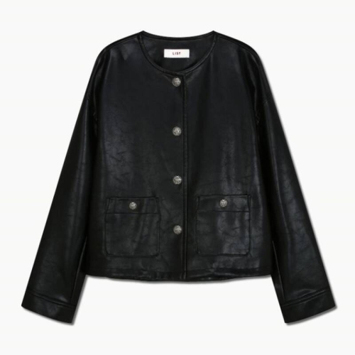 리스트 여성 레더 라운드넥 자켓 TWWJKQ52140