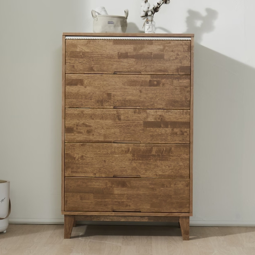 히트가구 G4101 고무나무 원목 5단 서랍장 800