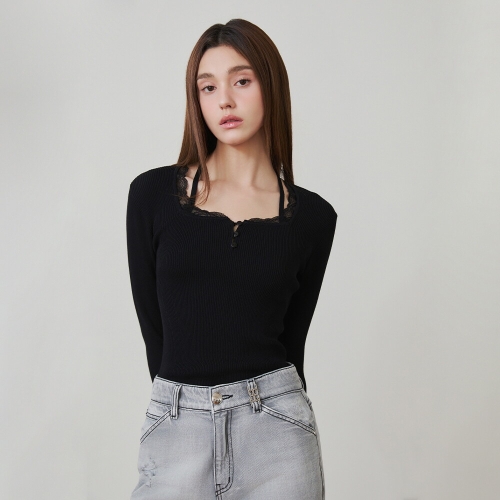 에고이스트 BL 스퀘어넥 레이스 트리밍 니트탑 ES2OKL04