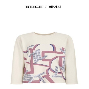 더아이잗 프린트 배색 코튼 티셔츠 IP3AOTS021_CC