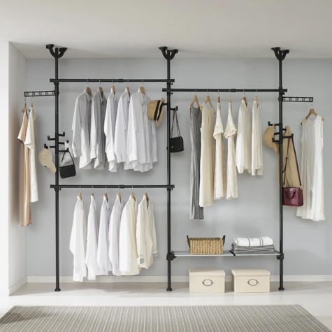 제조사 : 롯데알미늄 브랜드 : 이지온 등록일 : 2026.03 종류 : 천장고정행거수납형태 : 선반옷봉개수 : 3개프레임 : 철제특징 : DIY(조립식),폭조절가능,높이조절가능크기(가로x세로x높이) : 160~220x32x220~260cm가로 : 160~220cm높이 : 220~260cm색상 : 블랙