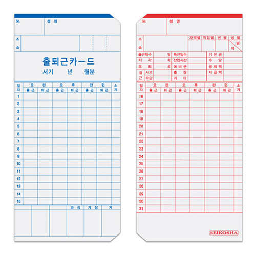세이코 출퇴근기록카드(QR350, QR411용) [100매]