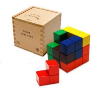 나무 비취우드 칼라 소마큐브+원목케이스 칠교 /쌓기 펜토 유아 초등 중등 수학교구 이벤트 할인