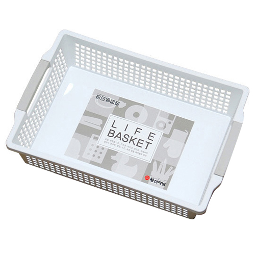 브랜드 : 창신리빙 등록일 : 2010.01 품목 : 바구니형태 : 사각형,오픈형특징 : 손잡이재질 : 플라스틱계열크기 : 48.5x32.3x11cm색상 : 화이트