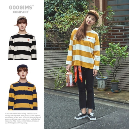구김스 남녀공용 스트라이프 긴팔티셔츠_G17FMRT703