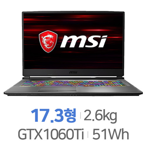 제조사 : MSI 브랜드 : GP시리즈 등록일 : 2019.08 화면 크기 : 43.94cm화면 크기 : 17.3인치운영체제(OS) : OS미포함(프리도스)해상도 : 1920x1080(FHD)주사율 : 144HzCPU 세분류 : 코어i7-9세대속도 : 2.6GHz그래픽 : GTX1660 TiGPU 칩셋 : UHD 630램 : 16GB용량 : 1TB무선랜 : Wi-Fi 5(802.11ac)단자 유형 : USB 3.1영상 입출력 : HDMI 2.0,mini DP편의 기능 : RGB 라이트입력장치 : 독립형키보드,숫자 키패드베젤 : 슬림베젤배터리 : 51Wh,6cell